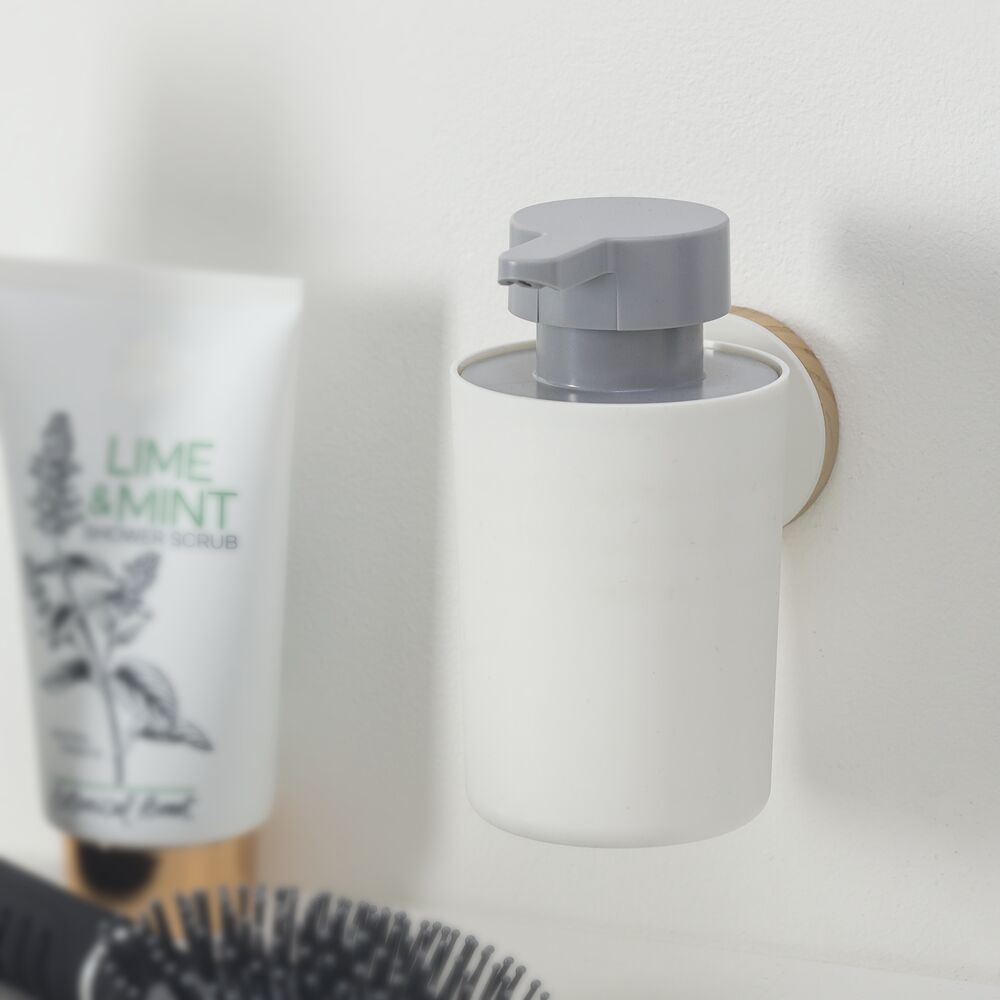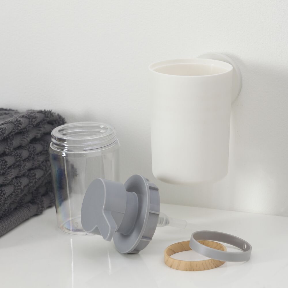 Дозатор для мила Tiger Urban біло-сірого кольору оснащений двома декоративними кільцями. Ці кільця світлого дуба та сірого забезпечать легкий акцент після встановлення. Дозатор також можна встановити без кільця, що робить його неймовірно легким для поєднання елементів вашого простору. Дозатор кріпиться на настінну плиту, а елементи кріплення (входять у комплект) приховані, що надає всьому цьому стильного вигляду.