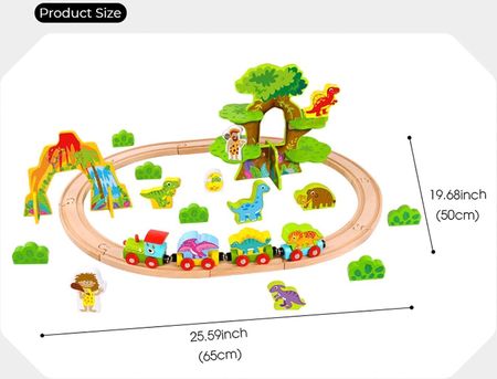 Іграшка Tooky Toy Drewniana Magnetyczna Kolejka Dinozaury + Figurki