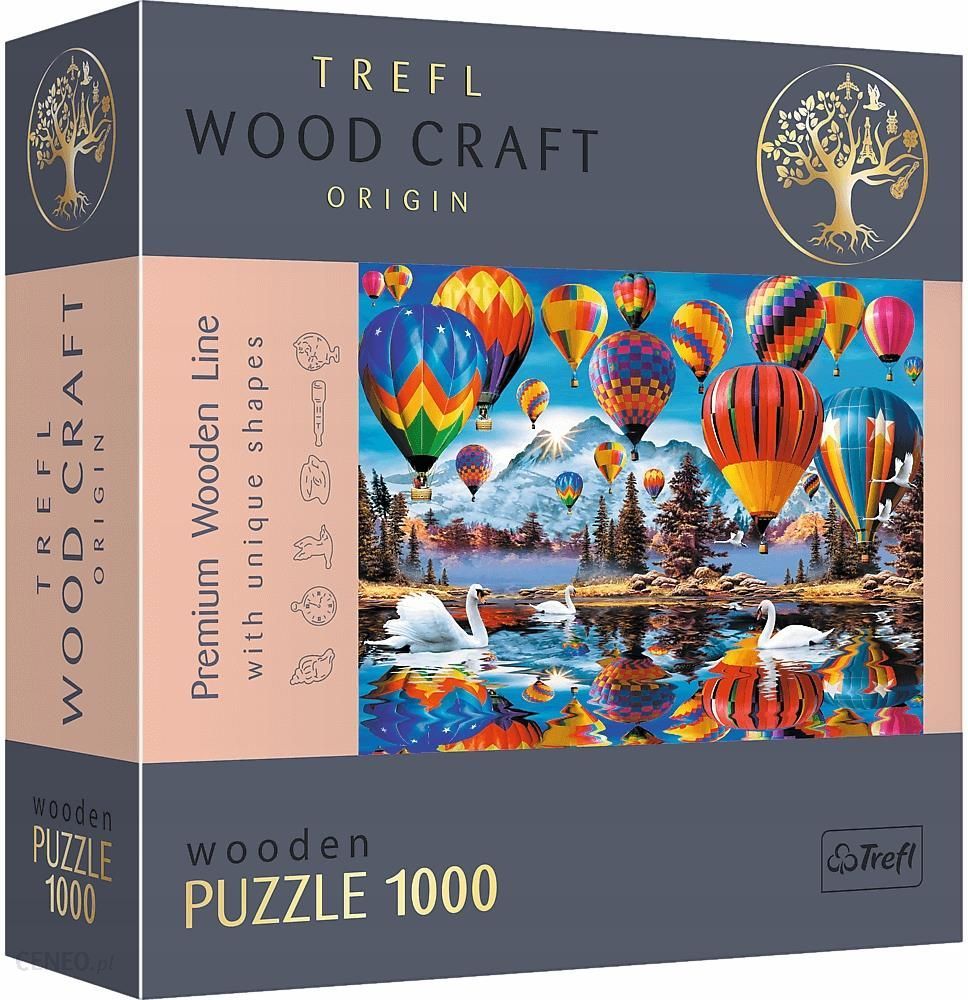 Ви фанат головоломок? Дерев'яні пазли Wood Craft від Trefl були створені з думкою про вас! Використовуючи унікальні частини пазла та оригінальні фігурки пазла, створіть картину та перенесіться в гірський світ, повний різнокольорових повітряних куль. Дерев'яні пазли неправильної форми - ідеальна альтернатива традиційним пазлам. Набір складається з 1000 елементів, у тому числі до 100 фігурок пазла унікальної форми, і кожен елемент пазла має декоративний візерунок на звороті.