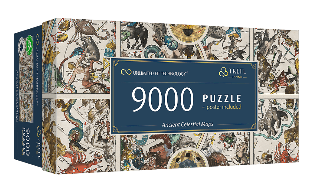 Відкрийте для себе головоломку Trefl Prime UFT — стародавні небесні карти, яка складається з вражаючих 9000 частин! Створіть стародавню карту космосу, повну знаків зодіаку та сузір’їв.