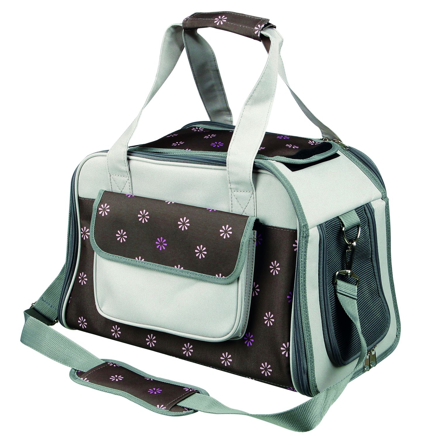 Сумка відкривається спереду та зверху, має знімний, регульований плечовий ремінь. Є короткий поводок, всередині якого не дає тварині вискочити. Сітчасті вставки забезпечують оптимальний комфорт циркуляція повітря (для захисту тварини можна накрити сіткою). Розміри 25x27x42 см.