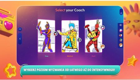 "так, і?" Аріана Гранде "Unstoppable" Sia "Poker Face" Lady Gaga "Basket Case" Green Day "Calabria 2007" Enur Ft. Натася ЛЕГКИЙ ЧИ НАСИЛЕНИЙ, ОБЕРІТЬ СВІЙ ВИКЛИК Незалежно від того, чи граєте ви з друзями чи родиною, у грі є хореографія для кожного, від простих рухів до більш складних програм. Деякі пісні танцюються по-різному залежно від вибраного тренера та рівня складності.