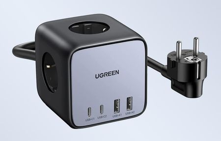 З 3 розетками змінного струму, 2 портами USB-C і 2 портами USB-A зарядна станція UGREEN 65W USB C забезпечує чудову організацію кабелів і максимальну ефективність заряджання. Захист від перевантаження, перевантаження по струму і заземлення забезпечують безпечну роботу кожного підключеного пристрою. Цей компактний подовжувач живлення ідеально підходить для подорожей і повсякденного використання. UGREEN DigiNest Cube 65W - це надійний зарядний пристрій, який може заряджати практично будь-який пристрій, від телефонів до ноутбуків. Цей подовжувач USB C PD3.0 – це ідеальне поєднання функціональності, безпеки та сумісності, що забезпечує швидке та зручне заряджання в будь-який час і в будь-якому місці.