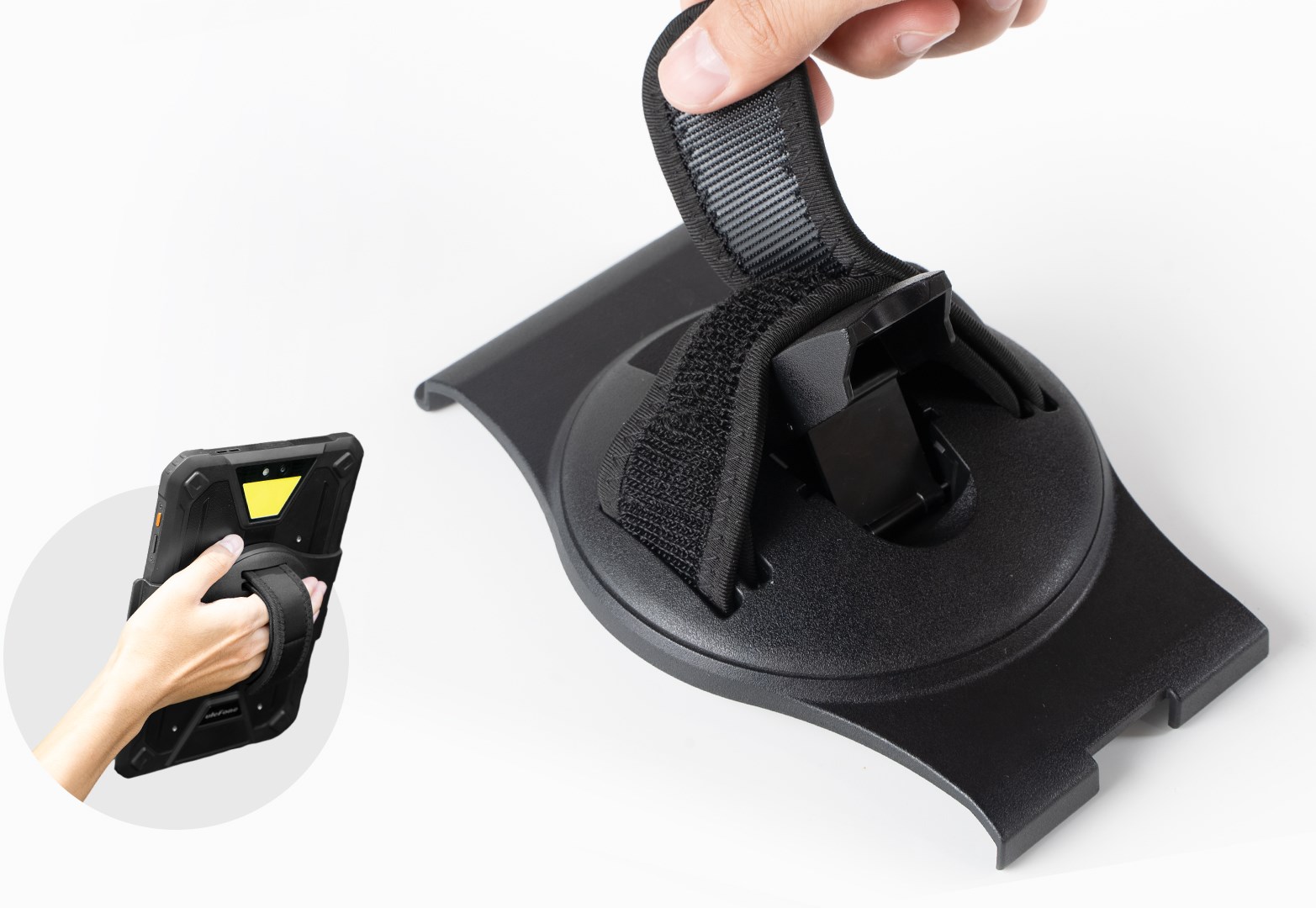 Дуже міцний затиск, який фіксує тримач планшета, дає змогу безпечно використовувати планшет Armor Pad як в офісі, так і на робочих місцях із більш складними вимогами.