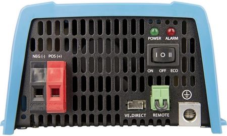Матеріал і колір: сталевий корпус і пластикова кришка (синій RAL 5012) Підключення акумулятора: гвинтові клеми Максимальний поперечний переріз кабелю: 10 мм² / AWG8 Стандартні розетки змінного струму 230 В: Schuko (CEE 7/4), IEC-320 (розетка в комплекті) 120 В: Nema 5-15R, GFCI Категорія захисту IP21 Вага та розміри