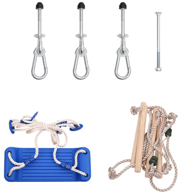 Розширте ігровий майданчик свого малюка за допомогою мотузкової гойдалки та драбини vidaXL, які легко збираються. Монтаж простий і швидкий, а в комплект входять всі необхідні монтажні аксесуари. Ви можете легко прикріпити сидіння та драбину до наявних конструкцій, створивши таким чином індивідуально адаптований куточок розваг для вашої дитини.