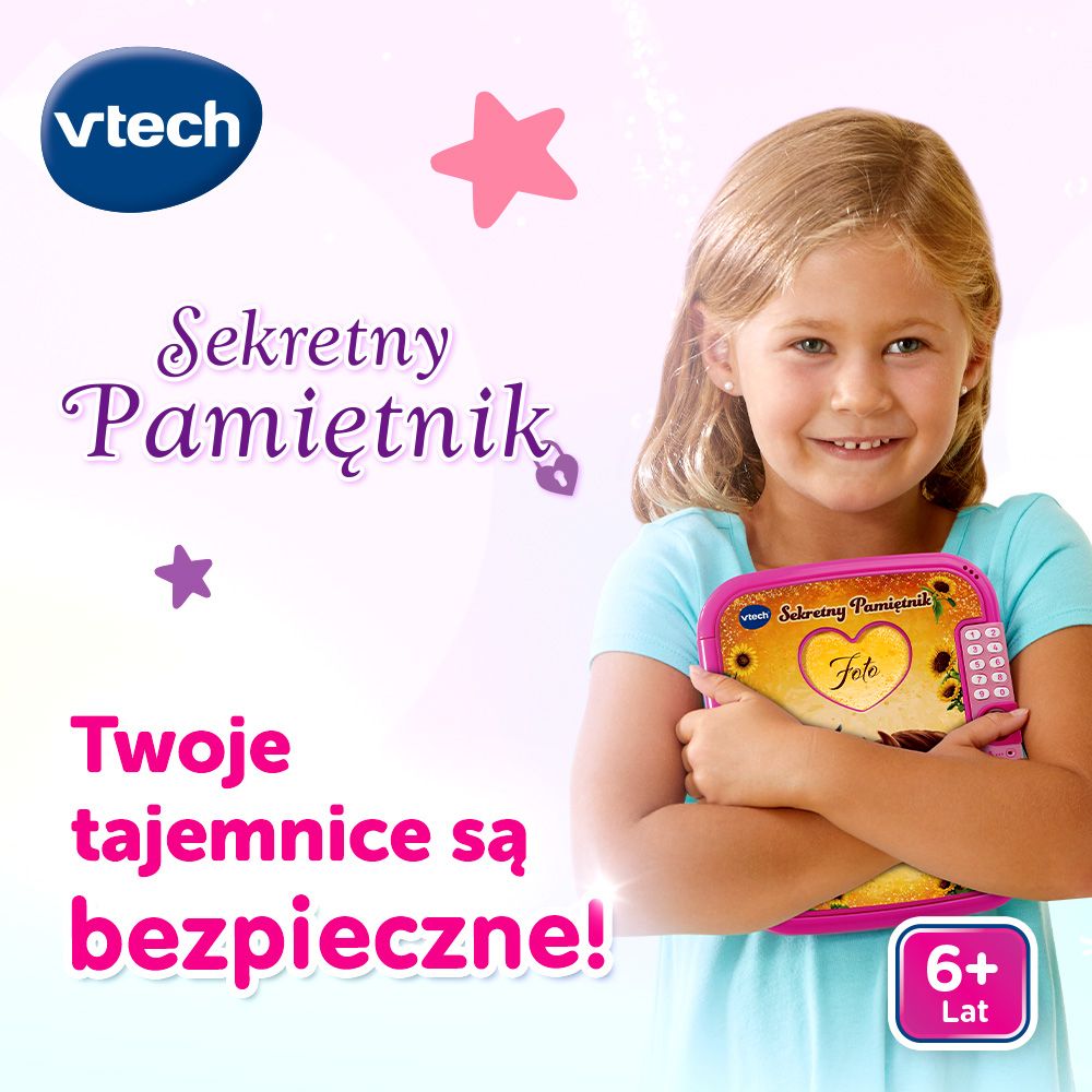 Таємний щоденник виготовлений польською мовою з високоякісних матеріалів, безпечних для вашої дитини. Він має регулятор гучності та опцію автоматичного відключення, що подовжує термін служби батареї. Лінія електронних іграшок VTech заохочує дітей вчитися та досліджувати з раннього віку. Бренд VTech – це технологія, дружня до дітей!