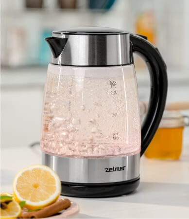Коли ви вмикаєте чайник, ви також вмикаєте енергозберігаючі світлодіоди, які освітлюють його внутрішність і киплячу воду. Підготуйтеся до надзвичайного візуального досвіду!
