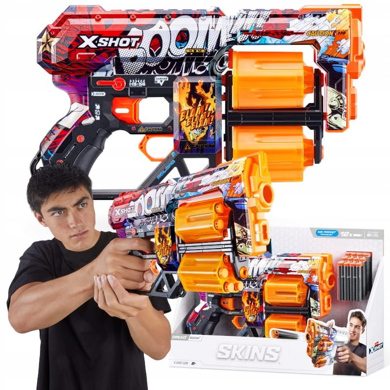 Іграшка ZURU X-SHOT SKINS WYRZUTNIA DREAD BOOM PISTOLET NA NABOJE + 12 NABOJÓW