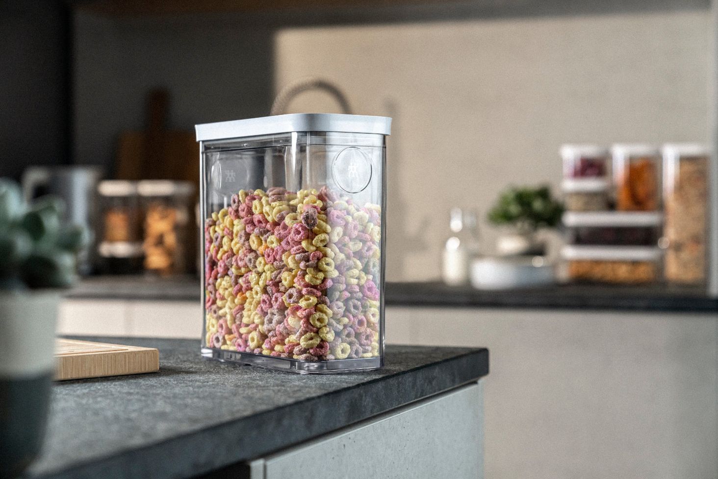 Контейнер Fresh&Save Cube з прямокутною кришкою об'ємом 2,9 л. Виготовлений з високоякісного пластику без вмісту BPA. Для сипучих продуктів. Для зберігання. Герметичний.