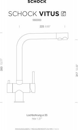 Якість: високоякісна кухонна фурнітура з розмірами 350 мм у висоту та радіусом дії 225 мм оснащена фіксованим випускним отвором із радіусом обертання 360° Обертається: Роторний одноважільний змішувач із міцної та гігієнічної нержавіючої сталі з надзвичайно високим виливом, має окремий вихід для питної води. 450 мм і розмір різьби 3/8 дюйма забезпечують сучасний вигляд в зоні раковини ВСТАНОВЛЕННЯ: Для встановлення арматури раковини потрібен отвір у раковині 35 мм. Всі інші поради щодо простого підключення арматури дивіться в додатку до продукту: Кухонні змішувачі SCHOCK оптимально поєднуються з мийками SCHOCK. Дизайн і функціональність ідеально поєднані, завдяки чому ця комбінація створює цілісний сучасний вигляд