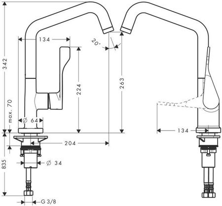 ?AXOR 39850800 Одноважільний змішувач для кухні ? ????керамічний змішувач??????поворотний вилив??????потік 13 л/хв???????Аератор QuickClean®??????може працювати з проточними водонагрівачами??? ???з'єднання шлангів PEX?????Змішувач для раковини Hansgrohe Axor Citterio: сталь?