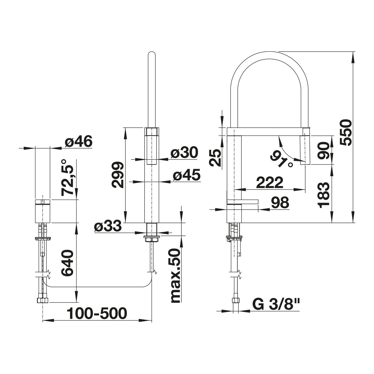 CULINA-S DuoІдеально підходить до камер лінійки SteelArt без планки крана Окремо розташована ручка змішувача для води Зручна фіксація носика за допомогою магнітного тримача Носик із високоякісного металу