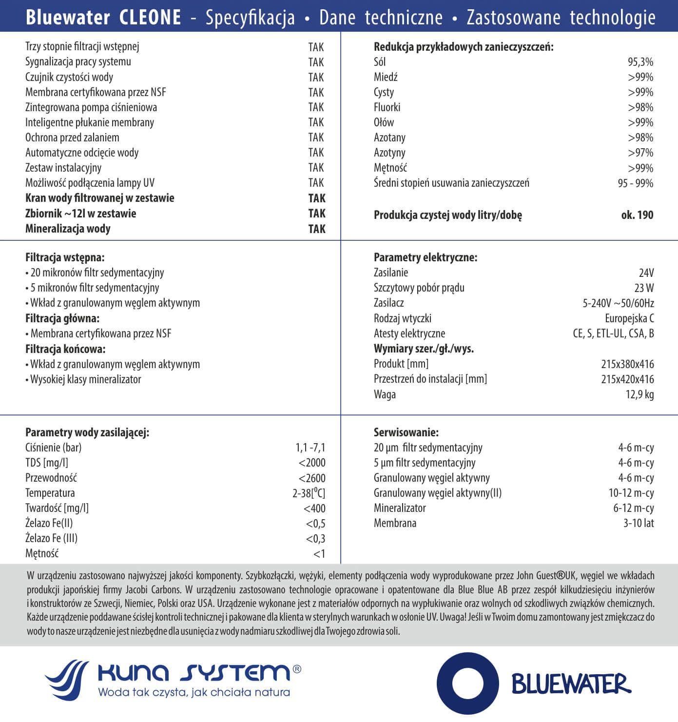 Bluewater Cleone™ — це найвищий рівень очищення та очищення води. Сучасне рішення, яке змусить вас забути про забруднену воду з присмаком хлору або про турботи практично про всі хімічні та біологічні забруднення. Завдяки цьому приладу у вас вдома буде власне джерело чистої та здорової води, призначеної для пиття, приготування їжі, приготування гарячих напоїв або миття фруктів та овочів.