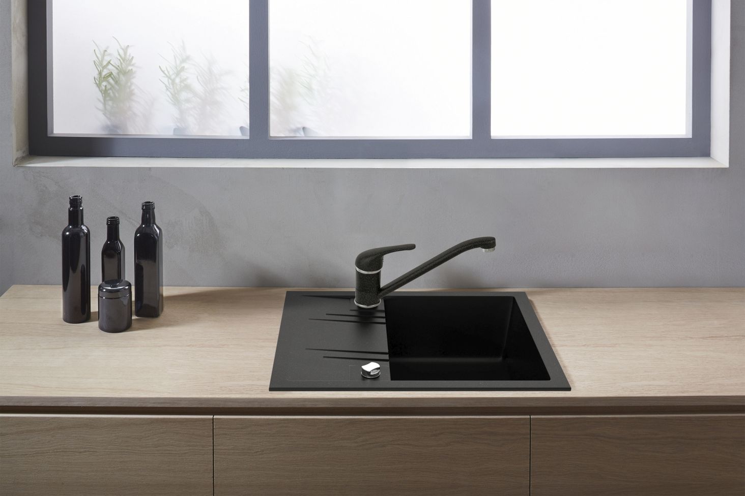 _x000D_ Ferro MEZZO II Мийка гранітна 1 чаша 48/58 блиск графіт (DRGM1/48/58HA)_x000D_