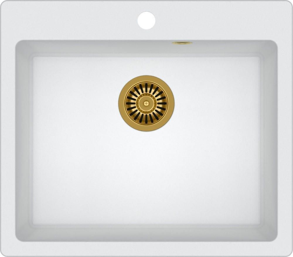 Мийка QUADRON MORGAN 110 GraniteQ білий металік із золотим сифоном, 1 чаша б/о HB8304U1-G1. Сучасний дизайн, адаптований до сучасних тенденцій, забезпечує високу твердість, довговічність і гігієнічність поверхні.