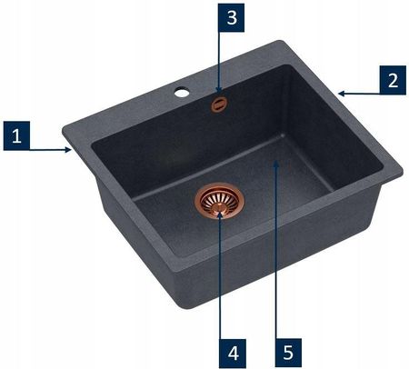 КУХОННА МИЙКА ВГРИВНА ОДНОЧАША 60 СМ ГРАНІТ ЧОРНИЙ