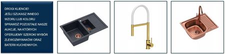 Мийка MORGAN 110 GraniteQ black diamond з сифоном Push To Open, колір мідь, 1 чаша б/в + гачки 4 шт