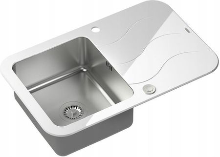 Скляна мийка з однією чашею та зливним краном ОСОБЛИВОСТІ МИКОВИНИ Тип: 1 камерний Спосіб кріплення: врізний Колір: білий Матеріали: камера з нержавіючої сталі StellQ кольору сталі, верхня частина зі скла HardQ білого кольору Розміри: довжина 78 см ширина 50 см глибина 19 см Розмір камери: 40 х 34 см