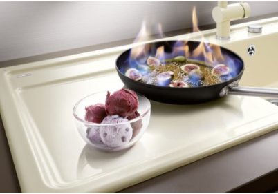 Керамічні раковини BLANCO обпалюються при температурі вище 1200 °C. Тому ви можете легко поставити в раковину розігріту до 280 °C каструлю або сковороду.