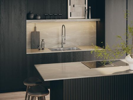 Раковина Ross також постачається з пробкою «клац-клак» того ж кольору, що й раковина, і сифоном, що заощаджує простір, розробленим для мінімізації місця під раковиною. Мийки Ross ідеально вписуються в сучасні та промислові кухонні інтер'єри, додаючи елегантності та функціональності. Вони підходять як для просторих мінімалістичних кухонь з нержавіючої сталі та скла, так і для більш теплих приміщень, де переважають натуральні матеріали, такі як дерево чи камінь. Завдяки універсальному дизайну вони ідеально вписуються в різноманітні аранжування, додаючи сучасного та витонченого вигляду.