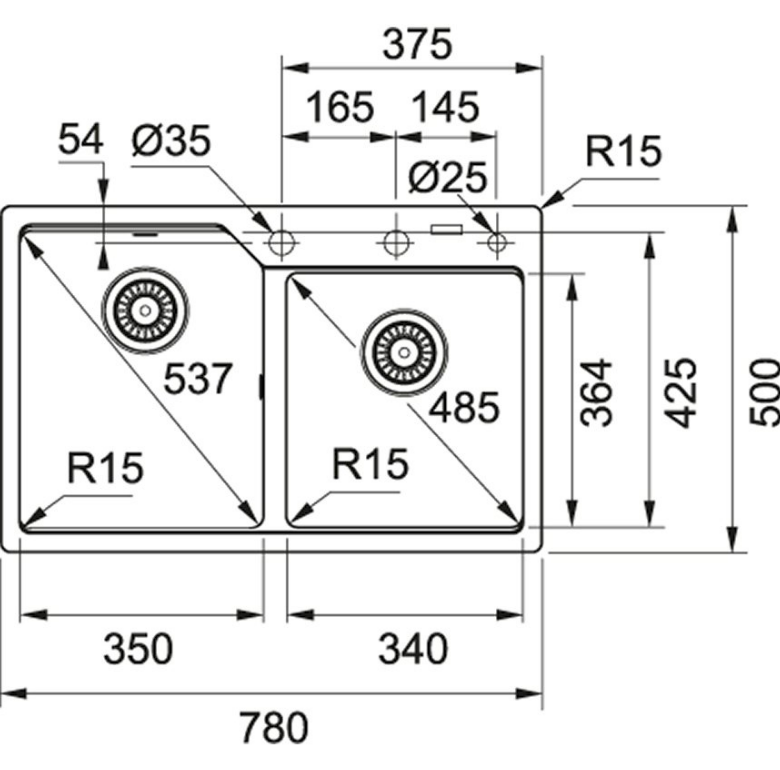Параметри Довша сторона 78 см Коротша сторона 50 см Кількість камер: 2 Підконструкція: 80 см Спосіб встановлення: втоплений у стільницю або врівень із стільницею Форма: прямокутна Зливний піддон: немає Сифон: немає Реверсивний: немає Отвір під кран: немає Матеріал: Fragranit+