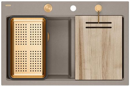 MARC 120 Workstation GraniteQ — мийка з двома чашами, яка поєднує в собі елегантність і стиль із винятковою функціональністю. Ідеально підходить для інтенсивного використання, він виправдає очікування навіть найвибагливіших користувачів, пропонуючи низку переваг, які зроблять щоденну роботу на кухні більш ефективною та комфортною. Завдяки двом великим камерам можна одночасно виконувати різні дії, такі як прання, полоскання або замочування. Це практичне рішення економить час і воду та забезпечує більшу гнучкість під час повсякденної роботи на кухні. Спеціально розроблений край дозволяє використовувати три функціональні аксесуари (у варіанті сталевого обладнання): обробну дошку з ясена, рулонний килимок і сушарку. Мийки з фурнітурою з PVD-покриттям та