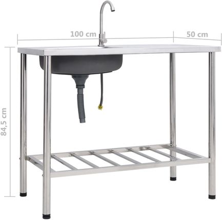 Колір: сріблястийМатеріал: нержавіюча сталь. Розміри раковини: 100 x 50 x 15 см (Д x Ш x В) Розміри нижньої рами: 98,5 x 48,5 x 84,5 см (Д x Ш x висота) Потрібне складання: так