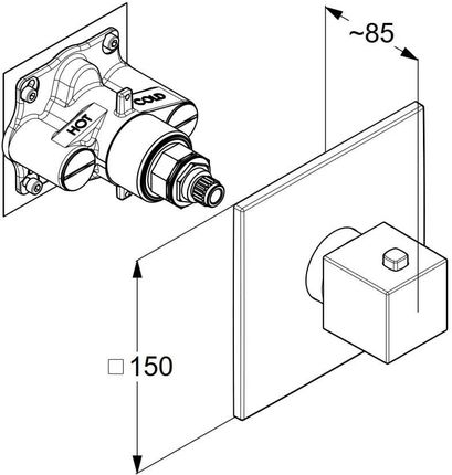 Змішувач вбудованого монтажу KLUDI DECUS з терморегулятором, хром. Гарантія Виробник надає гарантію на герметичність корпусів 10 років і 5 років на герметичність керамічних головок. Основні характеристики: - колір: хром - тип: душ - тип: одноважільний - монтаж: прихований - без запірної арматури - циліндрична металева ручка - ручка терморегулятора з блокуванням на 40°C Технічні дані: - розміри розетки: 150 мм - витрата води 40 л/хв при тиску 3 бар. Вбудований елемент (88022) не входить, купується окремо.