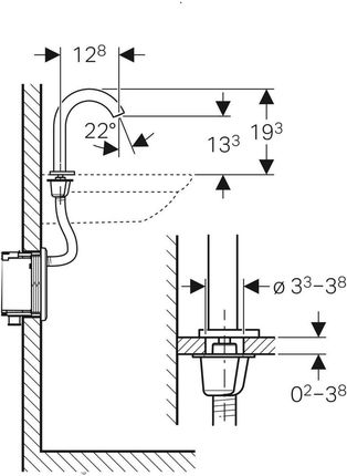 Акустична група згідно DIN-52 218: Група I, <=20 дБ(A) Клас потоку: немає Основний колір: Хром (глянцевий) Кількість отворів під кран: 1 отвір Максимальний потік (при 300 кПа): 0,08 л/с Матеріал батареї: інше Модель носика: фіксоване дно Напруга підключення: 230 В Обробка поверхні: Полірування Обмежувач температури: є Підключення живлення: Зовнішня різьба Програматор: Пульт Номінальна межа температури: так Регулювання часу змиву: є Тип управління: інфрачервоне Тип терморегулятора: Термостатичний Тип виливу: інший Тип джерела живлення: від мережі Розмір підключення живлення: 1/2 дюйма Самозакривання: немає Спосіб монтажу: Стільниця / отвір під кран Ступінь захисту (IP): Інший Загальна висота: 193 мм Висота носика: 133 мм З фільтром: так З розеткою/кришкою: так З трансформатором: так З носиком: є З захистом від зворотного потоку: так Захист поверхні: хромування Захист від реверсу відповідно до EN 1717: EB Дальність виявлення: 250 - 300 мм
