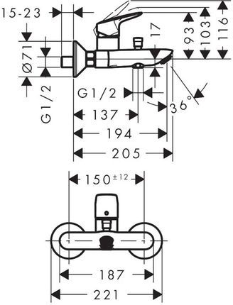 Характеристики виробу 2 діапазони ресиверів: відстань 194 мм: 150 ± 12 мм тип потоку змішувача: звичайний потік максимальна швидкість потоку при 3 барах: 22 л/хв Керамічна головка з положенням ручки Eco та 2 діапазонами потоку регульованим реле тиску обмеження температури з автоматичний зворотний клапан з глушником шуму підходить для проточних водонагрівачів тип підключення: підключення типу S настінний монтаж додатковий отвір перегляд не потрібний