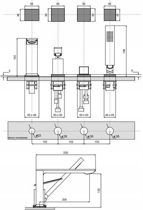 | Встановлення змішувачів для ванни | 4-otworowe |
