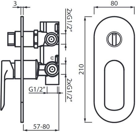 Керамічна головка SEDAL Розетка з внутрішнім ущільненням Поворотний перемикач 3 1/2" виходиКолір: матовий чорнийVBA5017/CZ