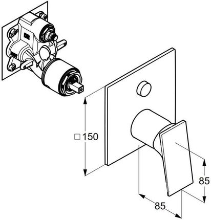 Змішувач для ванни та душа прихованого монтажу KLUDI DECUS, чорний матовий. Гарантія Виробник надає гарантію на герметичність корпусів арматури 10 років, на керамічні головки – 5 років. Основні характеристики: - колір: чорний матовий - тип: ванна і душ - тип: одноважільний - монтаж: прихований - керамічна головка з обмежувачем подачі гарячої води - автомат. перемикач душ/ванна PUSH&SWITCH Технічні дані: - розміри розетки: 150 мм - потік води 28 л/хв (нижній вихід) - 24 л/хв (верхній вихід) при тиску 3 бар У комплекті немає прихованого елемента (88022) ), які потрібно придбати окремо.