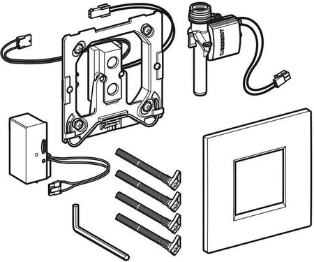 Набір включає: - кришку типу 30, зі склом інфрачервоного датчика - інфрачервоне керування, попередньо встановлене на монтажній рамі - електромагнітний клапан - монтажний матеріал - блок живлення Кнопка електронного змиву біло-хромована від бренду Geberit. Продукт призначений для автоматичного змиву пісуарів. Для установки в інсталяційні елементи пісуарів з фронтальним включенням. Блок живлення, інфрачервоний контроль, монтажний матеріал, електромагнітний клапан і кришка входять в комплект продукція бренду Geberit і асортимент інших виробників також доступні в нашій пропозиції.