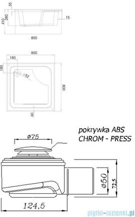 Кат. № 3.032 Довжина 80 см Ширина 80 см Радіус - Висота 41 см Глибина 28 см Форма: квадратМатеріал: санітарний акрилКолір: білий Спосіб монтажу: на підлогуДіаметр зливу: 52ммГарантія: 10 років