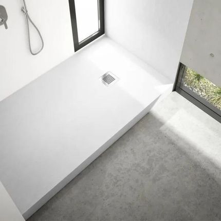 Кат. № 3.3355/B/ST-M2 Довжина 80 см Ширина 90 см Радіус - Висота 12 см Глибина падіння до 2% Форма: прямокутнаМатеріал: санітарний акрилКолір: білий, структура камінь Спосіб монтажу: на підлогу Діаметр зливу: 90ммГарантія: 10 років