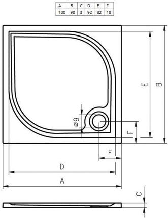 - матеріал: синтетичний мармур??- протиковзка поверхня??- установка: в підлогу, на підлогу або на ніжки??- посилена нижня пластина??- ніжки та сифон включені??- можливість доповнення сумісна панель?? Розмір A: 100 см??- Розмір B: 90 см??- Розмір C: 3 см??- Розмір D: 85 см??- Розмір E: 75 см??- розмір F: 18 см??- колір: білий