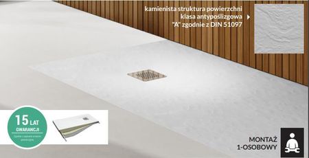 Душові піддони Kalait від Schedpol виготовлені із сучасного композитного матеріалу Stonicryl®. Це інноваційне поєднання полімерів, мінеральних компонентів і сумішей PU+, завдяки якому ми отримуємо найміцніші, ударостійкі, незламні та безпечні в логістиці, а також ідеально поглинаючі звуки падаючої води і водночас найтепліші. композит, призначений для зон купання. Додатковою перевагою душового піддону Kalait з матеріалу Stonicryl® є його легкість, а це означає, що збирати його потрібно лише одній людині. Крім того, новинка від Щедпол виготовляється за європейською технологією Stabilsound Plus®. Завдяки цьому піддон конструктивно посилений знизу і по краях, що значно підвищує його стійкість до ваги і стійкість до ударних пошкоджень. Душові піддони Stabilsound Plus® також мають гідроізоляційний шар, який ефективно захищає від вологи та утворення грибків і цвілі. Душовий піддон також захищений верхнім шаром, який має покриття Easy to Clean і Antibac. Завдяки цьому рішенню душовий піддон надзвичайно легко підтримувати в чистоті, а ріст бактерій значно обмежується. У набір входить душовий піддон Kalait White Stone, кришка з нержавіючої сталі M2 і сифон з верхнім очищенням від провідного бренду (. загальна висота комплекту в точці сифона 9,5 см).