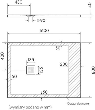 Кат. № 3.3112/B/ST-M2 Довжина 80 см Ширина 160 см Радіус - Висота 4 см Глибина нахилу до 2% Форма: прямокутнаМатеріал: композит Stonicryl®Колір: білий, камінь RAL 9016 Спосіб монтажу: в підлогу, на підлогуДіаметр зливу: 90 ммГарантія: 15 років