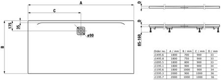 Прямокутний душовий піддон LAUFEN PRO 1800x1000 мм світло-сірий H2119560770001 Ширина: 1800 мм Глибина: 1000 мм Висота: 34 мм Форма: Прямокутний Матеріал: Marbond Кришка сифона з нержавіючої сталі з порошковим покриттям Спосіб кріплення: У кутку біля стіни, Вбудований в ніші Висота: ультраплоска (менше 45 мм) Діаметр зливу (мм): 90 Ілюстративне фото