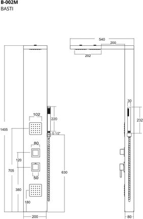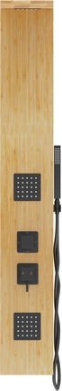 Технічні параметри: Матеріал корпусу: Бамбук, Колір: натуральний, Оздоблення: квадрат, Колір обробки: Чорний, Кран: Змішувач, Поверхня корпусу: напівматова, Захист поверхні: Anti Wipe, Технологія фарбування: Color Plus, Висота панелі: 1405 мм, Ширина панелі: 200 мм, Глибина панелі: 80 мм, тропічний душ: 540 мм,