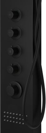 Панель має каскад (каскадний відтік води під тропічним душем) Це ідеальне рішення, коли ми хочемо відчути себе під струменем, або коли ми хочемо просто прийняти душ, не миючи волосся. . Гідромасаж: в панелі вбудовані три гідромасажні точки: верхня, середня і нижня. Всі вони мають систему ANTI-CALC. Завдяки цьому, злегка потерши форсунки на панелі, ми можемо збільшити натиск води від тонкої роси до струменя води на сталевій підкладці, на якій чітко намальована опція Економія води! Завдяки використанню сучасної технології вода в панелі розбивається на різьбові форсунки, що дозволяє насолоджуватися хорошим масажем. Завдяки цій процедурі панель можна використовувати в квартирах із середнім напором води.