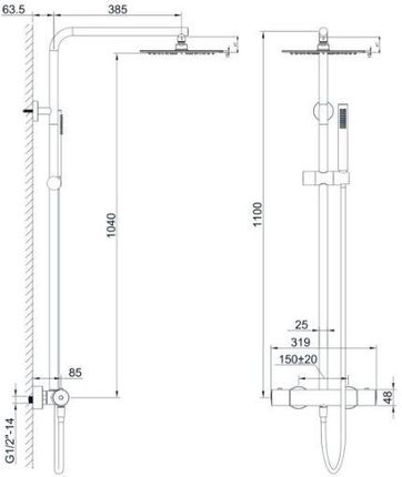 Двофункціональна термостатична душова колонка Rio з набором для душу та тропічним душем 250 мм, мідь 0401201RGN Emporia