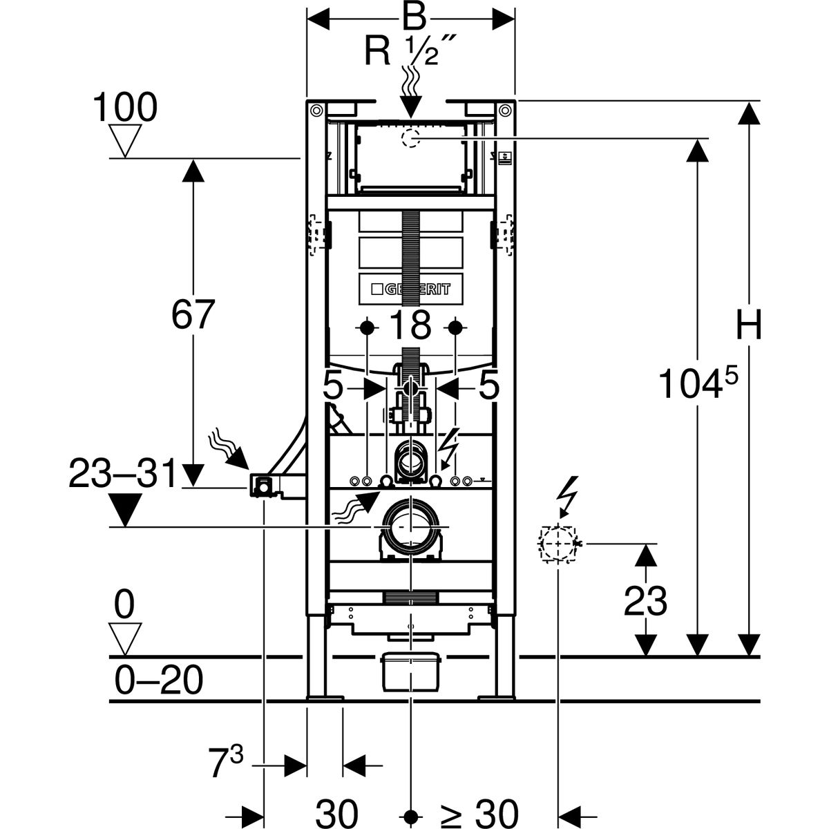 З'єднувальне коліно монтується вертикально і горизонтально. Кріплення з'єднувального зливного бачка прихованого монтажу з ізоляцією від роси можлива повторна установка без інструментів обслуговування прихованого бачка ззаду або вгорі захищає від ревізії вологи та брудуЗахисний кожух для ревізійного отвору, який можна вкоротитиЗ захисним каналом, що забезпечує швидке підключення води до душових унітазів Geberit AquaClean Монтаж електричних з’єднань