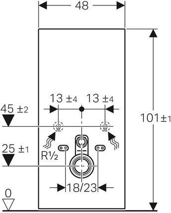 Призначений для реконструкції, адаптації та нового будівництва, для заміни: низьких навісних бачків, підвісних унітазів із насувним бачком, сумісний з унітазами для інтимної гігієни Geberit AquaClean, можна використовувати перед гіпсокартонними та суцільні стіни. Він дозволяє компенсувати будівельні допуски, має регульовану висоту до 7 см, є самонесучим, має підключення до води внизу.