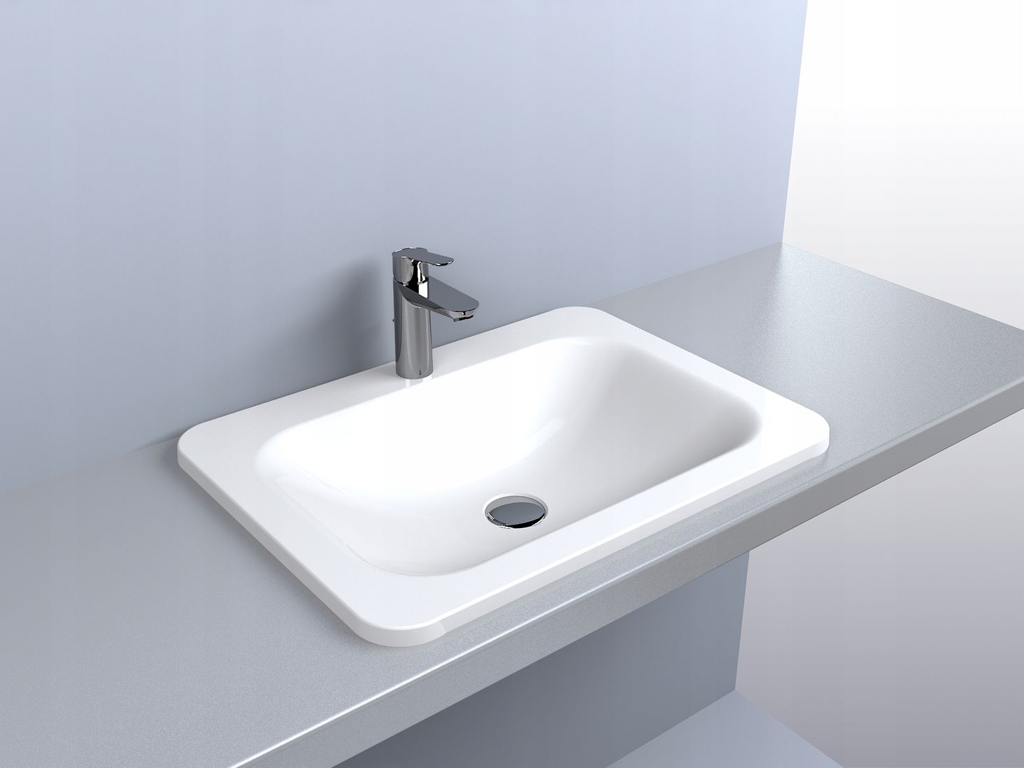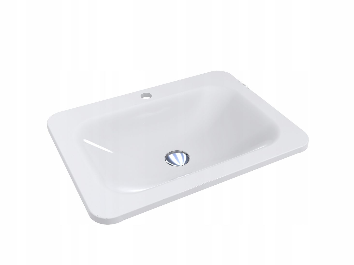 Умивальник з литого мармуру, прямокутний, вбудований у стільницю, з отвором під кран, 61,4 х 45,6 см, Miraggio