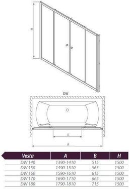 Дверцята для ванни RADAWAY VESTA DWD 160x150 FABRIC скло