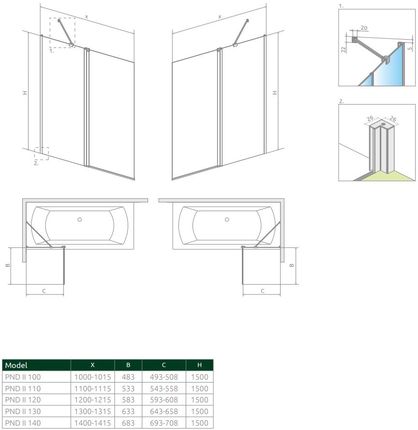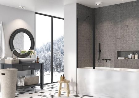 Переваги шторок для ванн Nes Black PND II: Перша частина крила ширми стаціонарно кріпиться до стіни, друга частина є рухомою і відкривається назовні. Виготовлений із загартованого скла товщиною 6 мм, що дозволяє відкривати екран назовні та всередину Поверхня стіни більше не буде перешкодою для встановлення затискачів врівень зі склом - рівномірна поверхня полегшує чистку - оптимально захищає від забруднення. Підтримання чистоти екрану Індивідуальний сервіс - можливо реалізувати будь-який, навіть самий незвичайний дизайн інтер'єру. Екран Nes Black PND II стандартно поставляється в прозорому склі: покриття Easy Clean оптимально захищає від забруднень і полегшує догляд за екраном. чистий. Завдяки такому покриттю менше забруднень осідає на склі, а ті, що трапляються, легше видалити.