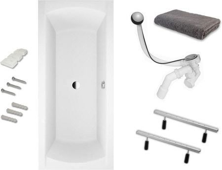 Ванна акрилова ПОЛІМАТ ІНЕС 170х75 + шторка двокомпонентна + автоматичний сифон + рама з ніжками + кронштейни + рушник ТІЛЬКИ У НАС ГАРАНТІЯ 15 РОКІВ (10 років гарантії виробника + 5 років додаткової гарантії Storemax Polska) ВАННА Тип: кутовий, прямокутний Довжина / ширина: 170 см / 75 см Глибина / висота: 45 см / 62 см Ємність: приблизно 180 л Матеріал / колір: акрил (5 мм) / білий Гарантія: 15 років, обслуговування від дверей до дверей. Країна походження: 100% Польща Виробник: POLIMAT